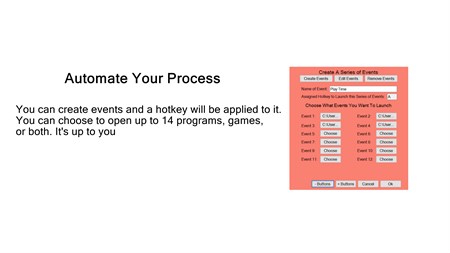 - It lets you create a series of events, for example, let's say you use Word, Excel, Chrome, Calculator, Calendar, PowerPoint, Skype, and a few websites. It could take you quite a while to open all those applications and webpages. Here is where Turbo Launcher comes in, it will automate that process for you. You can create a hotkey and see all of those applications and websites opening up for themselves.