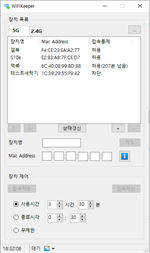 ▣ 사용법 1. Mac Address 컨트롤을 설정합니다. (5G와 2.4G 두 가지에 대해 전부 설정해야 접속차단이 제대로 동작합니다.) 2. 우측 중앙의 '+' 버튼을 눌러 새로운 장치를 추가합니다. 장치를 추가하려면 장치의 Mac Address를 알아야 합니다. Mac Address를 찾는 방법은 '?' 버튼을 누르면 설명을 보실 수 있습니다. 3. 장치가 추가되면 장치를 선택하고 접속을 허용하거나 차단하실 수 있습니다. (접속허용 또는 차단 작업시에는 일시적으로 WiFi 접속이 차단될 수 있습니다.)
