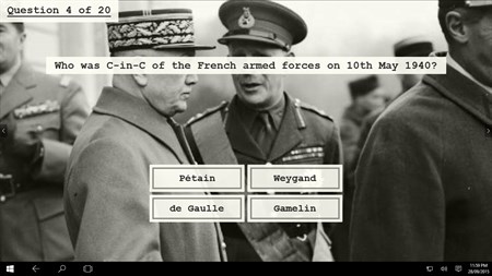 Do you consider yourself knowledgeable in all things World War II? Put your knowledge to the test and see how well you go in this free and simple to use app!