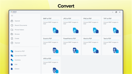 Create PDF (PRO): • Word to PDF • Text to PDF • Excel to PDF • PowerPoint to PDF • HTML to PDF • JPG to PDF • PNG to PDF • BMP to PDF • XPS to PDF • TIFF to PDF