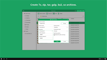 ⭐ Features ⭐ ✅ Create 7z, zip, tar, gzip, bz2, xz archives. ✅ Extract rar, zip, 7z, iso, cab, tar, xz, gzip, bzip, wim, deb, dmg, vhd and more archives. ✅ Support password-protected archives. ✅ Extract multi volume archives. ✅ User-friendly interface like the File Explorer. ✅ Dark and light themes.