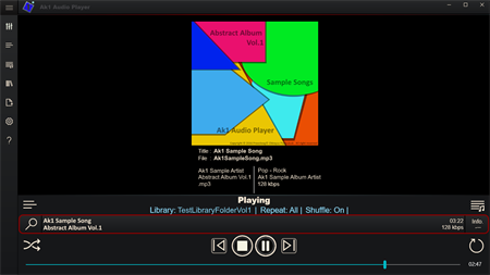 Music and audio player with sound booster. Nice visual of album art and audio track information. Boost your favorite musics sound with sound booster of Ak1 Audio Player. Scan and auto generate tracks library from chosen local music folders with option to included all sub-folders. Control and plays musics with media controller while focus on other works. Nice album art and track information visualization. Support audio file MP3, M4A, WAV, WMA.