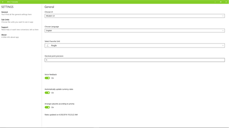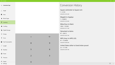 - 20 Different types of conversion with plenty of other subtypes. - Get live currency rates on lockscreen. - Voice Feedback for conversion result. - Choose Units and subunits you want to see in app. - App supports English, German, Spanish, Italian, French, Russian - Save your conversion for later use. - Edit and share your saved conversions. - Choose UI like: Classic UI and Modern UI