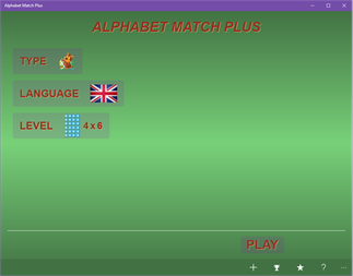 Alphabet Match Plus is a fun and educational game that combines a popular memory pair matching game concept with an easy-to-learn approach to memorizing the alphabets of various languages. With Alphabet Match Plus you can relax with the simple pair matching mode or you can choose an advanced "letter to word" option to practice memorizing foreign alphabets, letters, and words.