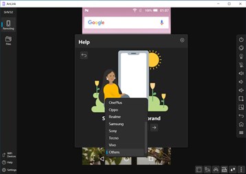 Operate your phone on PC safely and easily. All brand of Android phone supported, WiFi and USB connection, multiple touch, share clipboard, audio, keyboard mapping, file manager, immersive screen experience and more.
