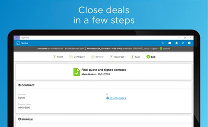 Designed to be customer facing, the app works offline and provides content and real time quotes without a connection. The seller is guided through the sales cycle presenting the right content to customers, quoting in real time and getting a contract signed. All of this can be done in one customer meeting. Apparound helps companies improve sales productivity by simplifying the sales process for sellers and making the buying process easier for customers.