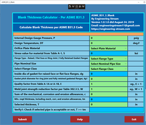 ASME_B31_3_Blank is a software program that can be used to determine the thickness of blanks based on internal pressure.