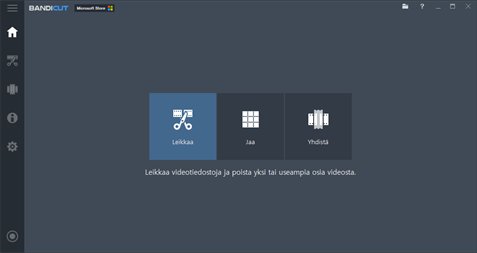 Bandicut on huippunopea videoiden leikkaaja- ja yhdistäjäsovellus helppokäyttöisellä käyttöliittymällä. Sovelluksella voit leikata videon osia nopeasti, pitäen samalla alkuperäisen videolaadun. Voit myös pakata videoäänet MP3-tiedostoksi, yhdistää monta videotiedostoa, poistaa yhden tai useamman osan videosta tai jakaa videon useaan eri osaan