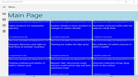 Beneath Our Feet UWP is a Windows 10 targeted news application that provides the user with the ability to monitor what’s happening in the world of home beer brewing. It comes with 5 pre-selected RSS site, and allows the user to change these and or add up to 5 more sites. The application also provides the means to save interesting links, for future review.