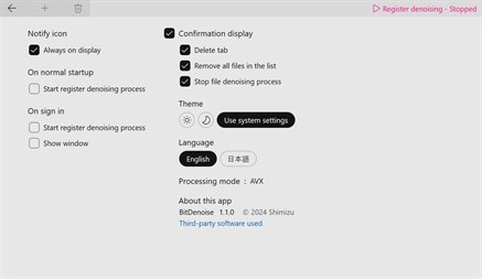 BitDenoise is an application for improving the sound quality of playback sound. By physically removing the noise (stabilizing) from the CPU registers and audio file data on the storage, it reduces jitter in the output audio signal and improves the quality of playback sound.