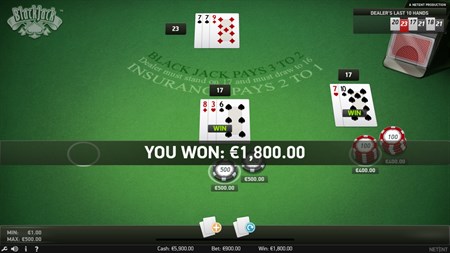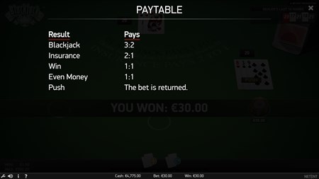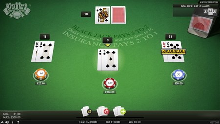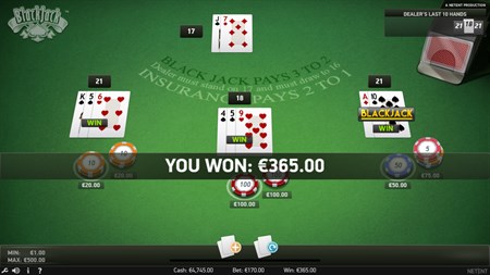 You now have the chance to play from one to three hands against the dealer and you can bet up to the maximum hand limit on each hand.