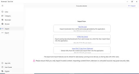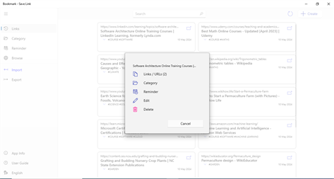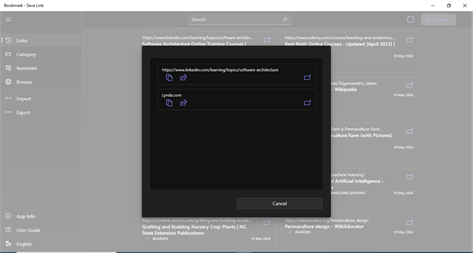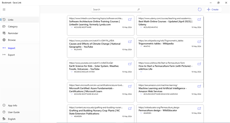 This application allows you to easily save and organize your favorite web URLs. You can create bookmarks in multiple ways. Once saved, you can organize these URLs using folder-like categories. With just a single tap, you can open any saved URL.