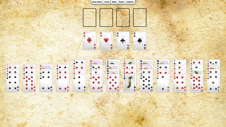 Calculation is a unique solitaire game. The foundations start with one Ace, two, three, and four, and the goal is to build each, regardless of suit, up to a king. What makes this game unique is that the foundations are built in intervals of one, two, three, and four respectively. For example, build the first foundation as ace -> two -> three, etc; the second foundation is build two -> four -> six, and so on. The top card of the deck can be played on a foundation or on any of the four wastepiles. While there are no restrictions on how to build the waste, once a card is placed there, it can only be subsequently moved to a foundation. These rules give Calculation solitaire an immense allowance for skill. Plan carefully by trying to discard in the same sequences you'd build the foundation, and try to cover as few cards as possible with Kings as they're always played last.