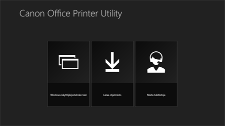 - Voit määrittää tulostuksen lisäasetukset, kun tulostat Windows-kaupan sovelluksista tai Windows-sovelluksista. - Voit käyttää Canonin tukisivustoa ja ohjelmistolatausten sivustoa. - Voit käynnistää etäkäyttöliittymän, jossa voit hallita lasermonitoimilaitteita ja lasertulostimia selaimen kautta. - Voit tarkistaa lasermonitoimilaitteiden ja lasertulostimien tilan (paperi lopussa tms.). - Lisätietoja etäkäyttöliittymän käynnistämisestä on asetusnäytön kohdassa [Tämän sovelluksen käytöstä] sovelluksen asentamisen jälkeen. * Jotkin toiminnot eivät ehkä ole käytettävissä käytössä olevan lasertulostimen tai lasermonitoimilaitteen mallin tai asennustilan mukaan. * UFR II/UFRII LT V4 -tulostinajuria ei välttämättä voi käyttää alueen mukaan.