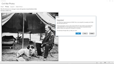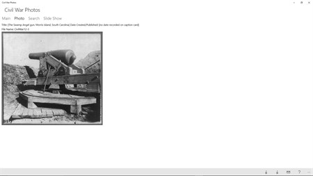 This app allows you to view and search a collection of photos of the American Civil War, 1861 – 1865, at the Library of Congress and in the public domain. The images are from the original glass plate negatives made under the supervision of Mathew Brady and Alexander Gardner plus additional sources according to the Library of Congress.