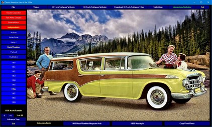 Another incredible DVD-ROM from HI-Tech Software. This photographic scrapbook showcasing the legendary American classic cars of the 1950's contains well over 1500 high resolution (1200x730) photos, graphics, 22 videos and TV Commercials, nearly 600 classic car magazine ads and much more.