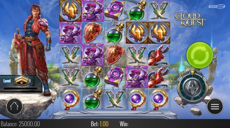 The sky's the limit in CloudQuest, the game-lover's video slot. Levelling up has never been so lucrative! Connect three or more matching symbols along any diagonal, horizontal or vertical line in the 5 x 5 grid to win. Symbols in winning combinations are cleared away, allowing any symbols remaining in the columns to fall into place and give you new chances to win. If you manage to clear all 25 symbols in the grid, the kingdom honours you with a special jackpot reward!