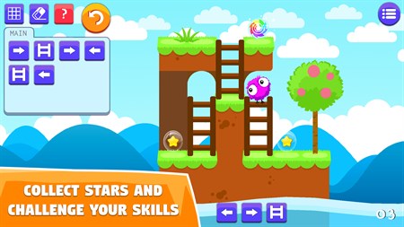 Take the exciting first steps in coding and delve into the world of Aurora - an utterly lovable fuzzball that needs your help to get back home. Train your brain and solve tricky spatial puzzles using only programming commands. Guide Aurora through fascinating colorful levels each of them presenting an even greater logical challenge. Different puzzle elements like flying platforms, movable bridges, ladders and portals are gradually introduced making programming even more fun. The game's beautiful graphics, sounds and humorous messages keep kids focused on the learning process.