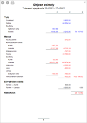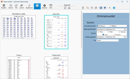 Päivä-valintaikkuna on käytettävissä Projektio-sivulta. Kätevä kattava valintaikkuna, joka näyttää erittelyn kaikista tapahtumista ja tilitiedot valitulta päivältä.