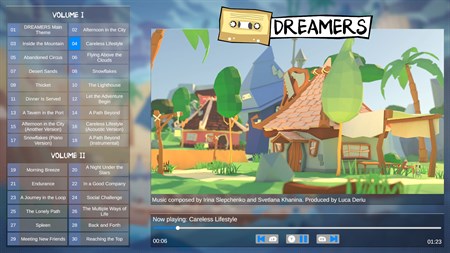 With its 31 instrumental tracks, the soundtrack of DREAMERS promises to transport players in a relaxed and exciting atmosphere, to immerse after a tiring day, and to travel with the game's protagonists between different worlds and realities.