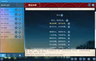 This application provided human read audio, comment and pinyin, also translation, can be used for primary and secondary education.