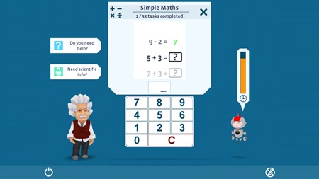 Albert Einstein and his cute little assistant Robo will support you in any aspect of the game. They will be at your side whenever you need them, explaining the different exercises and illustrating the scientific background of each exercise. They will motivate you to keep moving and to care about your mental fitness.