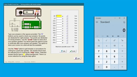 Teaching or learning applied electricity and electronics can be engaging and exciting! Learning through a series of challenges beats textbooks and lectures anytime. Electricity Challenge is a set of fifteen interactive lessons in that let students learn by “doing”. Each lesson has fully worked out example circuits. Learners are presented with meaningful problems to solve. Student results are graded and corrected immediately. Lesson results can be printed or stored in a disk file. The component values and parameters used in each lesson are randomly selected. A classroom of students working on a lesson each gets a unique problem of the same difficulty. Students may repeat a lesson without seeing the same numbers and parameters. Teachers can work through a lesson projected on classroom screens prior to tasking students with a problem type. Do you teach workshops or classes that involve electricity? Electricity Challenge can bring learning to life. Participants are engaged in the learning process rather than passive observers. You can now be a facilitator of learning instead of just a lecturer. Electricity Challenge can be a digital “workbook” for the class or workshop. The topics included in Electricity Challenge are: (1) Electric Ideas, (2)Electrical Components, (3) Powers of Ten, (4) Color Codes, (5) Ohm’s Law One, (6) Ohm’s Law Two, (7) Power One, (8) Power Two, (9) Series Voltage Sources, (10) Series Circuits One, (11) Series Circuits Two, (12) Parallel Circuits One, (13) Parallel Circuits Two, (14) Series Parallel Circuits One and (15) Series Parallel Circuits Two. Classes or workshops may choose to use as few or as many topics as suitable for the purpose.