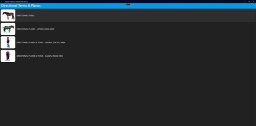 EQUINE ANATOMY ON DEMAND! View, learn and quiz yourself! • Veterinary terminology and vocabulary • Directional terms • External landmarks and surface anatomy • Skeletal system • Muscles in detail • Pronunciations