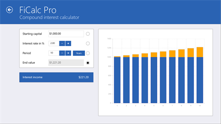 FiCalc Pro Lite is a professional financial calculator that allows various calculations from the areas of "Saving & Investing", "Building and Housing" or "Financial Transactions" in a few steps. With simple and intuitive operation FiCalc Pro Lite provides meaningful analyzes to assist in the evaluation of the calculation. It is also possible to calculate a variety of individual factors to answer the most important questions in the credit and investment advice quickly and competently.