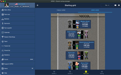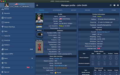 GPRO on klassinen pitkän aikatähtäimen ajostrategiapeli, jossa suunnittelu-, rahanhallinta- ja tiedonkeruutaitoasi laitetaan koetukselle. Pelin tavoitteena on päästä korkeimpaan eliittiryhmään ja voittaa maailmanmestaruus. Mutta tämän saavuttaaksesi sinun on edettävä tasoilla, joissa on monia ylä- ja alamäkiä. Hallitset kilpa-autokuljettajaa ja autoa, sekä olet vastuussa kilpailuasetusten ja strategian valmistelusta, aivan kuten Christian Horner tai Toto Wolff tekevät Formula 1:ssä. Sinun tehtäväsi on antaa kuljettajallesi paras auto sekä hoitaa henkilöstöasiat, mutta sinun on myös käytettävä rahasi viisaasti. Kerää telemetriatietoja kilpailuistasi parantaaksesi tuloksiasi ja antaaksesi itsellesi etulyöntiaseman kilpailijoihin nähden seuraavan kerran kun kilpailet samalla radalla. Voit myös liittyä ystäviesi kanssa joukkueeksi ja kilpailemaan tiimimestaruudesta, samalla kun työskentelette yhdessä kehittääksenne ymmärrystänne pelistä. Jokainen kausi kestää noin 2 kuukautta. Kilpailut simuloidaan suorana kaksi kertaa viikossa (tiistaisin ja perjantaisin klo 21:00 suomen aikaa). Vaikka peli ei edellytä sinun olevan sisäänkirjautuneena kisojen aikana, niiden seuraaminen livenä ja chattailu muiden managerien kanssa lisää hauskuutta. Jos sinulta jää live-kilpailu väliin, voit katsoa kilpailun uusinnan milloin tahansa. Jos olet suuri F1- ja moottoriurheilun fani ja pidät manageri- ja moninpeleistä, liity nyt ilmaiseksi ja tule osaksi fantastista peliä ja mahtavaa ja ystävällistä moottoriurheiluyhteisöä!