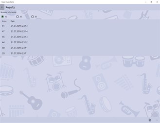 Guess music that is stored on your device. You have 7 seconds and 4 variants of answer. Listen playing track and choose the answer. Game's duration may be 10, 20 or 50 rounds. For right answers you get score points (7 maximum). Your progress is saving. Try to get more points! Good luck! Remember, you must have some music tracks in Music Library on your device or on sdcard to play the game. The required minimum is 40 tracks.