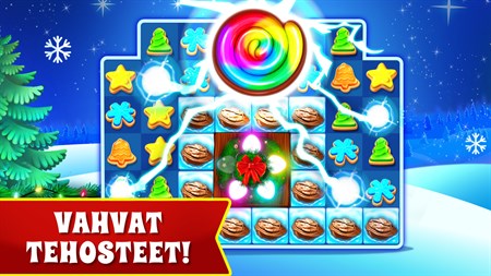 Joulupukki valmistautuu joulunaikaan, eikä hän tykkää mistään yhtä paljon, kuin kourallisesta joulupipareista. Auta tämä kunnon joulu-ukko ulos vaihtamalla laattoja ja yhdistämällä kolme tai useampi pipari kerralla. Tyhjennä tilaa nokkelalla yhdistä 3 -yhdistelmällä ja jatka pulmia ratkoen samalla, kun lisää keksejä putoilee ylhäältä. Etene vikkelästi ja yhdistä fiksusti, jolloin pääset tavoitteisiisi, ennen kuin siirtosi loppuvat. Jos näin käy, Joulupukin on häivyttävä lahjoja jakamatta!