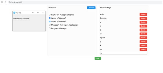 WoW Multiboxing Tool. Simple and easy to use keypress synchronization program, similar to KeyClone. In the web page, select the application window that needs to synchronize keyboard keys, select the keys that do not need to be synchronized, and click the start button to use. Tested in World of Warcraft.