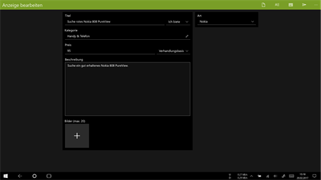 Kleine Anzeigen ist eine inoffizielle eBay Kleinanzeigen-App für Windows 10. Stöbere durch mehrere Millionen von Angeboten und Gesuchen in dutzenden Kategorien entweder in ganz Deutschland oder in Deiner näheren Umgebung, schreibe Anbieter an oder füge Anzeigen zu Deiner auf allen Geräten synchronisierten Merkliste hinzu. Speichere Suchaufträge ebenfalls synchron oder pinne sie Dir als Live Tile auf die Startseite. Erstelle und bearbeite Deine eigenen Anzeigen auf bequeme Art und Weise, speichere Entwürfe ab und füge Bilder per Drag & Drop zu Deiner Anzeige hinzu.