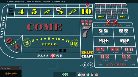 Knave Craps is a realistic game of casino-style Craps that allows you to become familiar with the game and the multitudes of different bets on your Windows 10 or 11 computer.