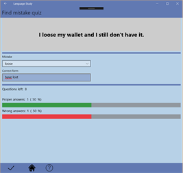 Language Study is an educational app that will help you to learn languages faster. It lets you: -Create your own question sets based on three cathegories (for example: flashcards cathegory). -Solve question sets created by yourself, published by other users or created by admin. -Publish your question set so it will by available for others. -Track your progress and solved excercises with statistics module. -Have access to your questions sets from every Windows 10 and Windows 10 Mobile device. -Rate question sets, add them to favourites, filter them by difficulty and many more...
