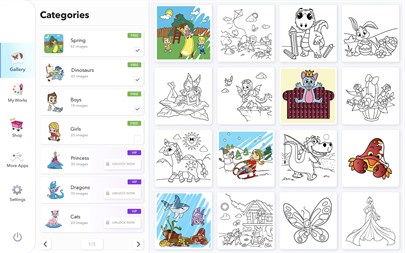 Lastemme paras mielessä olemme luoneet värityskirjan, jossa on 17 tarkkaan valittua kategoriaa, joissa jokaisessa on jopa 35 värityssivua. Valitse suuresta valikoimasta värityskuvia ja etsi kategoria, jota lapsesi rakastavat. Onko heidän suosikkinsa söpö koira? Vai kissa? Vai kauniit perhoset? Lohikäärme? Lasten värityskuvia -sovelluksesta löytyy kaikkea. Anna lapsesi kokeilla sitä ja katso, kuinka heidän värityksensä herättää kuvat henkiin.