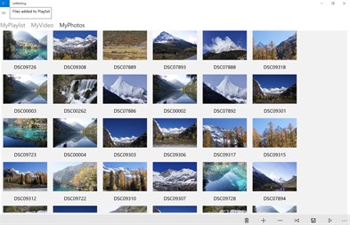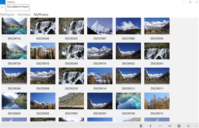 Large quantities of video files and photos can be playback as slideshow with smooth transition. The transition duration can be customizable. Depending on the last selection of either photo or video media, when the play button at the bottom right is clicked, the app will navigate to the Player page and playback the corresponding selected media. If it is video, the audio of the video is playback by default. The volume and transport of the video such as fast forward, pause or reshuffle can be control by the standard app bar buttons in the Player page. This app can now be considered a jukebox player.