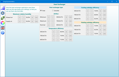 3. Heat exchanger Calculates how warm room air heats up cool ambient air before supplying it as fresh air to the room. While heating up the ambient air, the heat exchanger cools down the room air, which may result in condensate. When the ambient air would be too cold, this calculation dimensions an electric heater to prevent condensate.