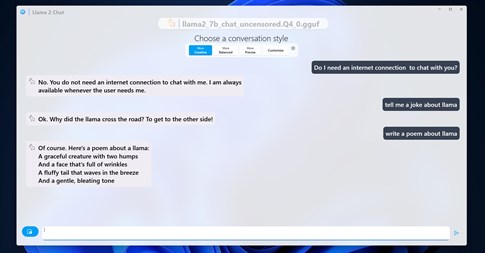 - Offline Accessibility: Engage with our sophisticated Llama 2 model anytime, anywhere, without the need for an internet connection.