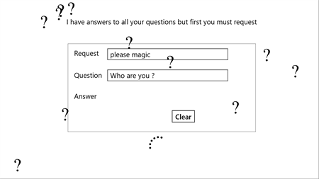 Magical Answers is a very simple trick to make on your friends and other people to answer all their questions. In the first you should delude them and tell them it’s a real magic that know everything and even don’t need an internet connection (Take care of that Magical Answers know only the things you know). You should tell your friends that to answer the question I should make a request. In the Request textbox press the control (Ctrl) button and write the answer of the question you are going to ask, you'll notice that the textbox will write a certain phrase character by character (The request) to delude the user. Then write the question in the questions textbox and then press ask button. The answer is the text you wrote in the request textbox. Some people will say that’s a trick and let me try. Let him try and when he try and presses the ask button no answers will appear. Because he didn’t press the CTRL button in the first textbox so he will never know the trick unless you told him. But please after delude them tell them the trick because some people have real problems with magic.