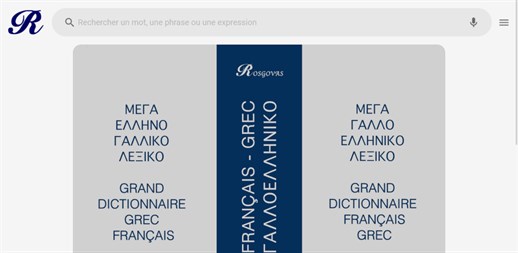 Le dictionnaire Rosgovas est la référence des dictionnaires français-grec grec-français. Le Grand dictionnaire est l'ouvrage ultime y compris pour les traducteurs professionnels. L'application permet aux lecteurs abonnés au dictionnaire de le consulter en ligne.