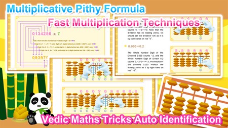 FEATURES SUMMARY: - All kinds of Rapid Calculations on Multiplication - Multiplicative Pithy Formula Tricks - Abacus Decimal Division - Rounding to the nearest hundredth Pitfall - Dealing with Negative Numbers on Abacus - Abaculator auto-determines the best rapid calculation method - Two hands fingering method fosters right brain functions - Virtual Abacus allows you to practise along everywhere - Assists in achieving the ultimate aim of abacus training, transforming visualized beads move on imaginary abacus and getting rid of the substantial abacus