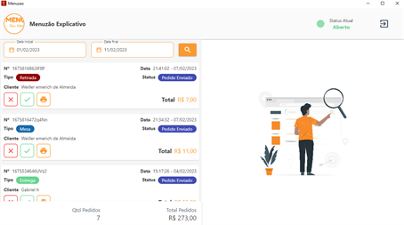 Menuzão é o gestor de pedidos do aplicativo Menuzão destinado aos restaurantes parceiros.