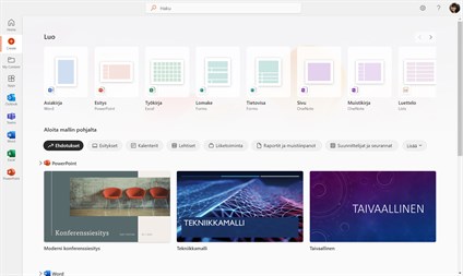 Kaikki suosikki tuottavuussovellukset ja -sisältösi sijaitsevat Microsoft 365-sovelluksessa. Nyt uusia tapoja, joiden avulla voit etsiä, luoda, jakaa ja tallentaa sisältöäsi yhdessä paikassa. Kirjaudu sisään työpaikan, koulun tai henkilökohtaisella Microsoft-tilillä ja aloita maksuttoman työpöytäsovelluksen käyttäminen jo tänään. Microsoft 365 -sovelluksen avulla voit tehdä seuraavia asioita: • Keskity tehtäviin ja käytä nopeasti tiedostoja, jotka on jaettu kanssasi tai joita on muokattu äskettäin aloitusnäytössä. • Luo upeaa sisältöä mihin tahansa projektiin tai tilanteeseen käyttämällä maksuttomia malleja esimerkiksi Wordissa, Excelissä, PowerPointissa ja Clipchampissa. • Etsi tiedostojasi ja tallenna ne turvallisesti OneDriveen 5 Gt:n maksuttomalla pilvitallennustilalla ja automaattisilla sisältövarmuuskopioinnilla kaikissa laitteissasi. • Käytä Microsoft 365 -suosikkisovelluksiasi yhdessä paikassa, kuten Microsoft Teamsissa, Wordissa, Excelissä, PowerPointissa, Outlookissa, OneDrivessa, OneNotessa, Visiossa ja paljon muuta.