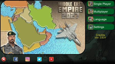 Become the Supreme Commander of the Middle East in this immersive strategy war game. Select your nation (Egypt, Palestinian Authority, Iran, Lebanon, Syria, Turkey, Jordan, Iraq, Kuwait, Saudi Arabia, United Arab Emirates, Yemen, Oman, Qatar, Bahrain, Cyprus, or Israel) and battle against intelligent AI enemies.