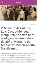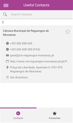 Application that aims to promote news and events, spread of information and tourist and cultural promotion of the municipality of Reguengos de Monsaraz. The group of features will soon be available and the municipality will be able to communicate and receive direct feedback from the citizens, by providing some services. Key features: . Consultation of local information . Cultural agenda . Consultation of news, . Notifications; . Sending of occurrences . Weather informations; . Sugestions; . Large item collection; . Pharmacies; . Water counter; . Civil Protection.