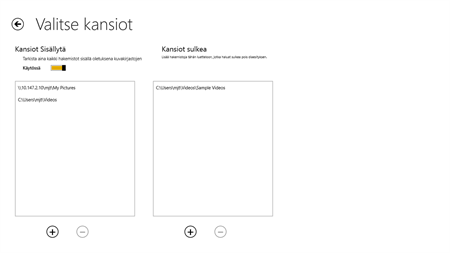 Monet asetukset ovat käytettävissä, vain pyyhkäisemällä oikealta laidassa ja valitse asetukset -kuvaketta. Yksi tärkeimmistä on valita, mitä hakemistoja käytetään ja mitkä eivät kuulu. Älä unohda, että voit sisällyttää kuvia eri verkon tietokoneet!