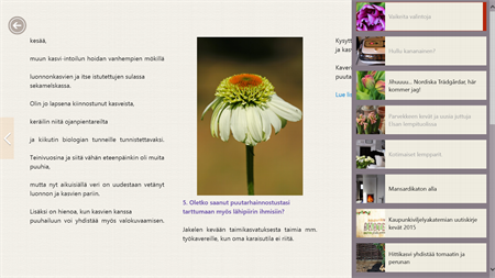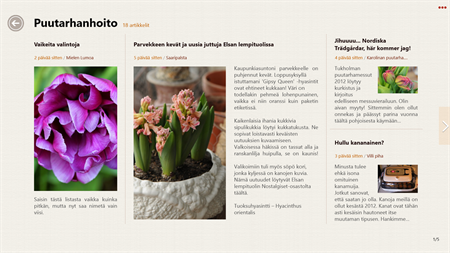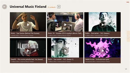 Selaa kattavaa luetteloa oman uutistenlukuelämyksen luomiseksi. Lue kauniisti esitellyt artikkelit aikakauslehden muodossa ja katso kiinnostavat YouTube-videot koko näytöltä. Myös 3D-sivunkääntötoiminto antaa vaikutuksen, että todella käännät kirjan sivuja.
