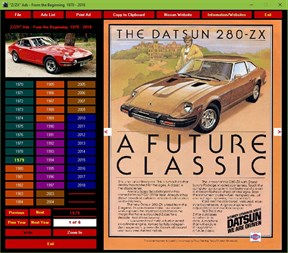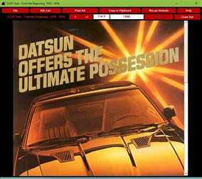 "Z/Zx" Ads - From the Beginning 1967 - 2022 Take a nostalgic journey back to the beginning of the "Z". See the very first ads as they appeared in magazines back in 1970. Then follow the evolution of the "Z" right on up to the latest convertible supercars and the 2022 400Z Prototype. This unbelievable multimedia collection of almost every "Z/Zx" ad released by Datsun/Nissan in the US (nearly 200!) will fascinate you for hours! This is the largest collection of "Z" ads available in one resource anywhere.